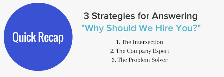 The good news is, despite how demanding and weirdly petulant the question is, it’s actually a really great opportunity to sum up why you’re a good fit for the position. It allows you to talk about your skills, your fit with the culture, and everything in between. What more could you ask for in an interview?
