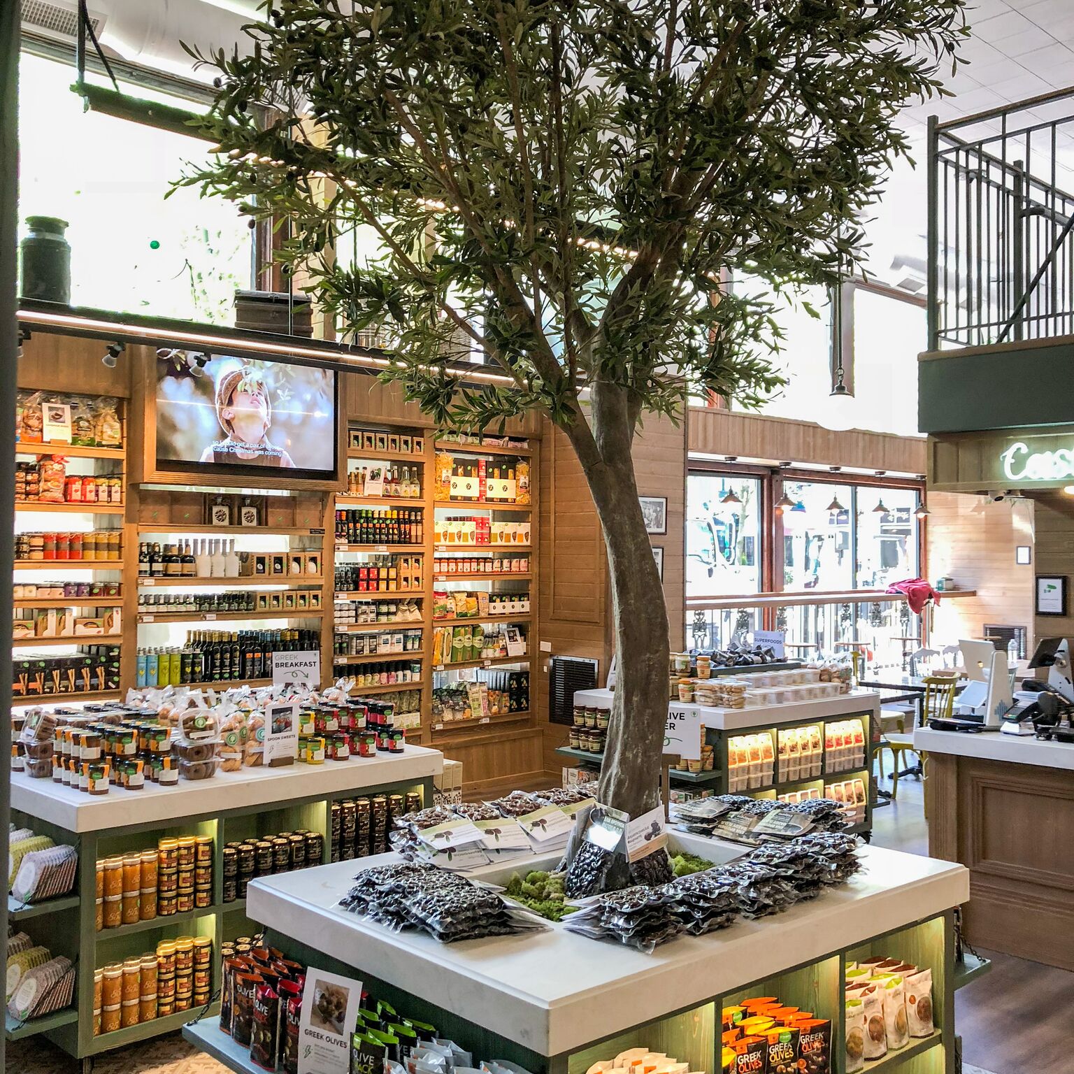 Ο σχεδιασμός του καταστήματος έχει βασιστεί στο μοντέλο του ανανεωμένου Flagship store της Αθήνας, προσφέροντας με αυτόν τον τρόπο στους επισκέπτες την ευκαιρία να ανακαλύψουν το παραδοσιακό παντοπωλείο με 800 και πλέον προϊόντα μικρών Ελλήνων παραγωγών, καθώς και γευστικές προτάσεις με φρεσκοψημένες πίτες, δροσερές σαλάτες, σάντουιτς, φρεσκοστυμμένους χυμούς, ποικιλία καφέδων και Yogurt bar με αυθεντικό ελληνικό γιαούρτι. Επίσης, δίνεται η δυνατότητα να επιλέξουν ανάμεσα σε περισσότερα από 40 είδη αλλαντικών και τυριών που κόβονται επιτόπου τη στιγμή της παραγγελίας, καθώς και ανάμεσα σε φρέσκα φρούτα, λαχανικά και χειροποίητα έτοιμα γεύματα ελληνικής κουζίνας.